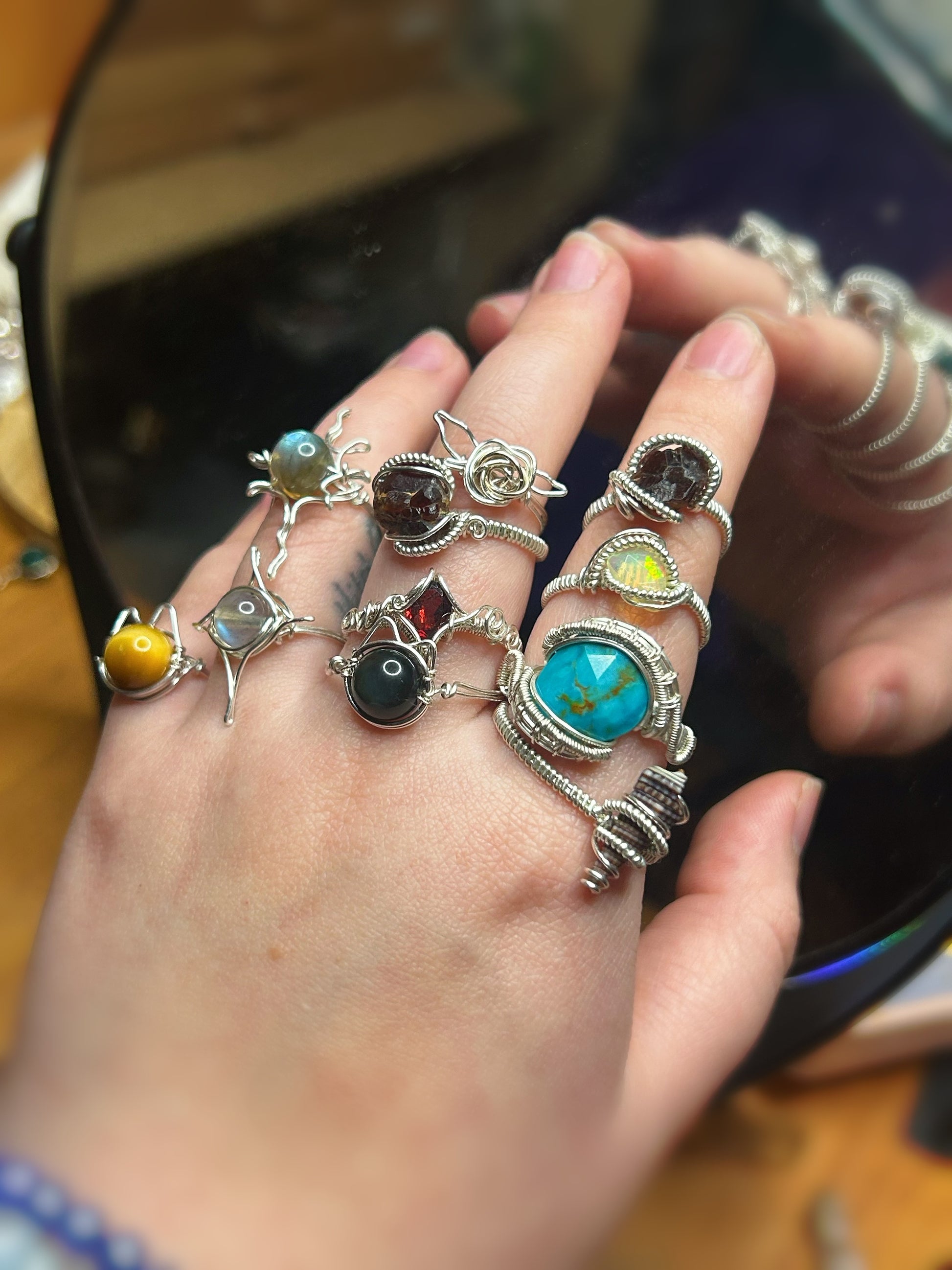 If you’d like to place a custom order, please purchase one of the five custom slots available each month and contact me within 5 business days at ivyswirewrap@gmail.com or on Instagram @ivys_wirewrap to discuss your design ideas and preferences.