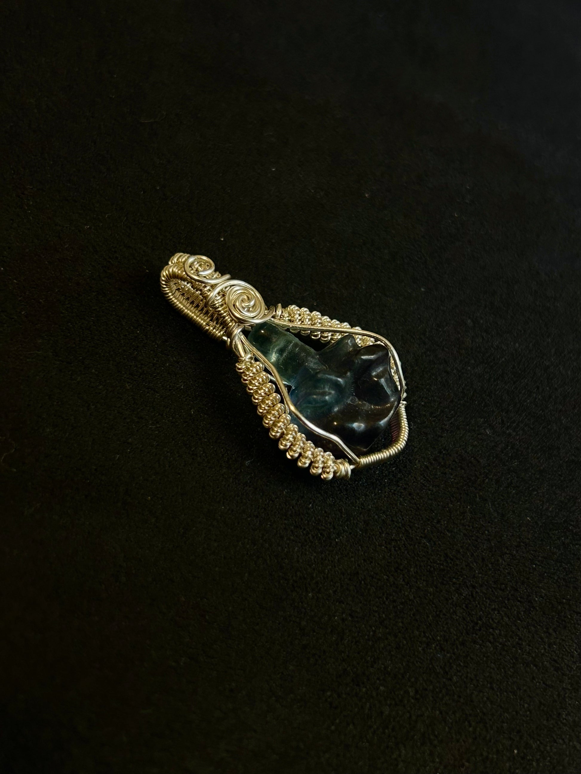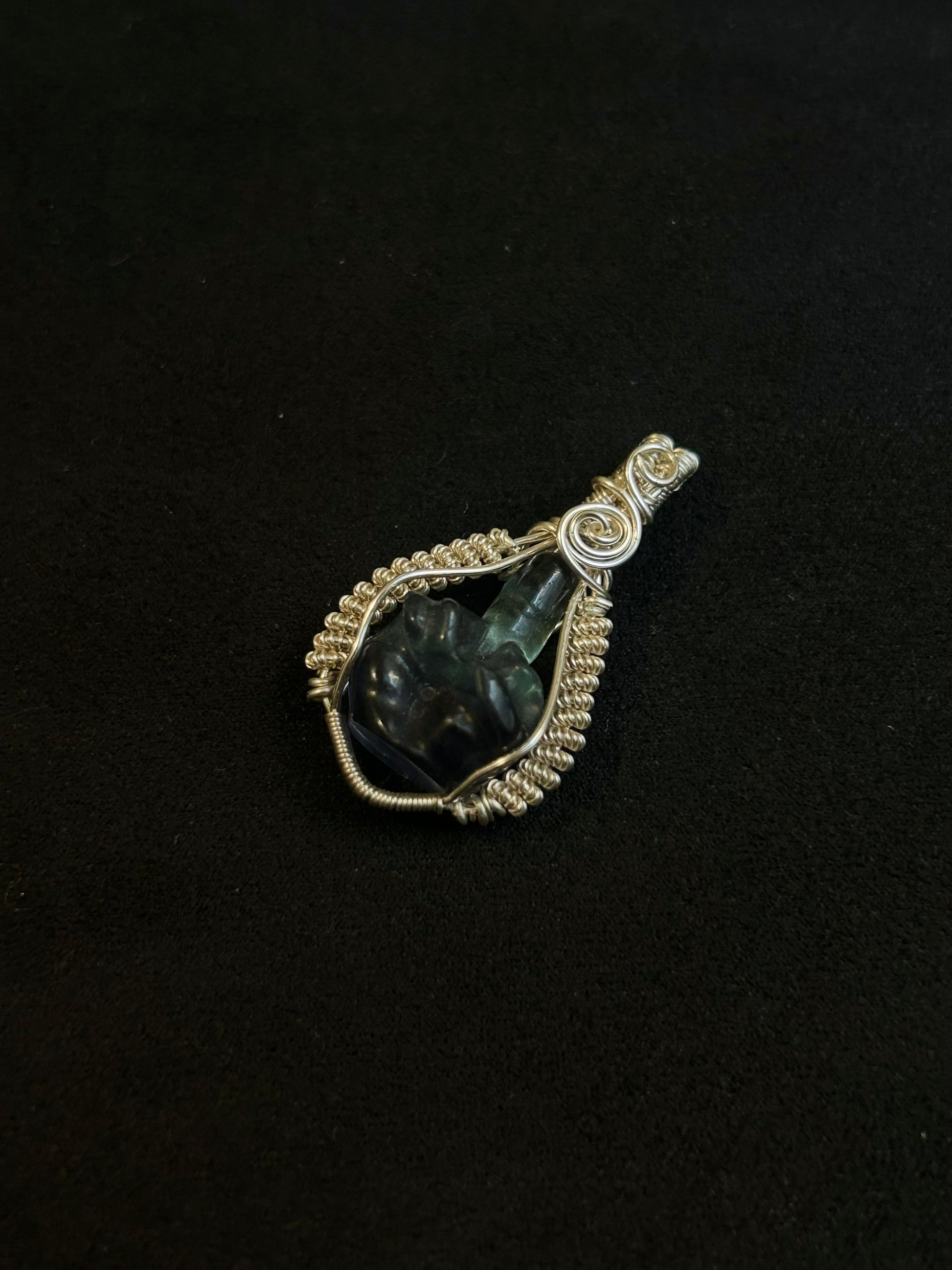 My Last Fxck - middle finger carved fluorite wire wrapped pendant handmade by me, crafted with color-preserving coated silver wires. Comes with a black polyester adjusted cord for immediate wear.