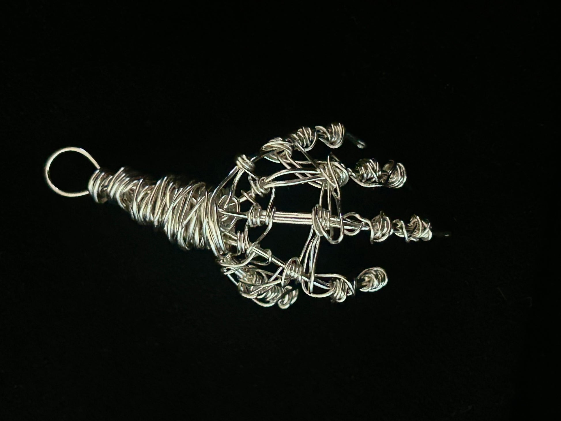 A wire skeleton hand pendant handmade by me, crafted with color-preserving coated silver wires. Comes with a black polyester adjusted cord for immediate wear.